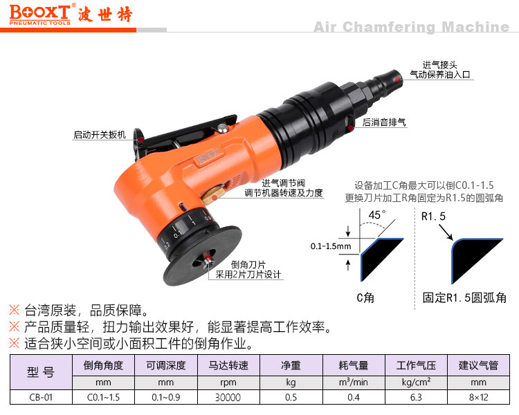 东莞市强劲五金工具有限公司提供台湾BOOXT波世特品牌气动工具,迷你气动倒角机CB-01厂家直销,首件享特价。咨询热线:4008301980