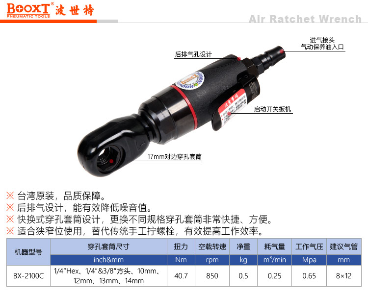 东莞市强劲五金工具有限公司提供台湾BOOXT波世特品牌气动工具,气动穿孔棘轮扳手BX-2100C厂家直销,首件享特价。咨询热线:4008301980