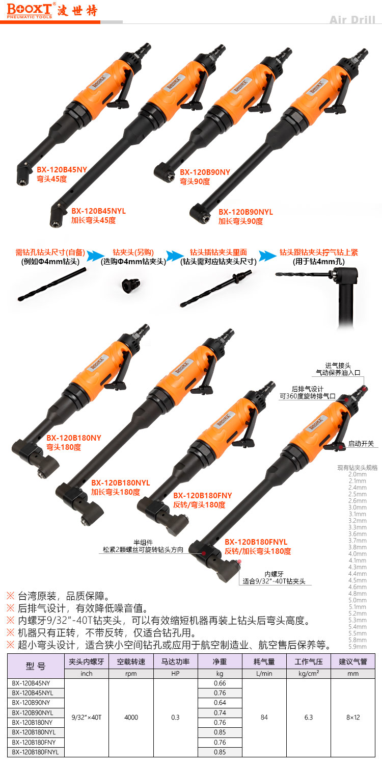 东莞市强劲五金工具有限公司提供台湾BOOXT波世特品牌气动工具,小型直角气动钻BX-120B90NY厂家直销,首件享特价。咨询热线:4008301980