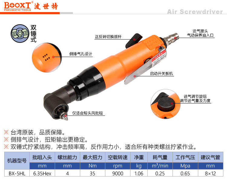 东莞市强劲五金工具有限公司提供台湾BOOXT波世特品牌气动工具,气动直角螺丝刀BX-5HL厂家直销,首件享特价。咨询热线:4008301980