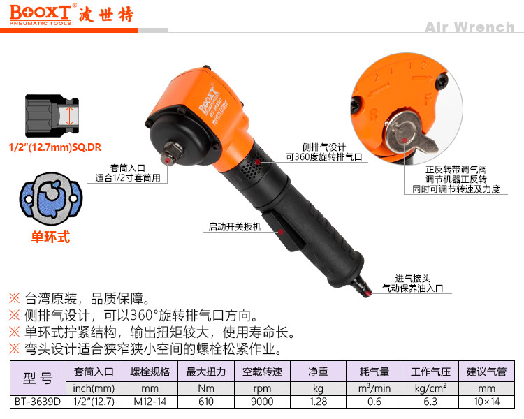 东莞市强劲五金工具有限公司提供台湾BOOXT波世特品牌气动工具,直角小风炮BT-3639D厂家直销,首件享特价。咨询热线:4008301980