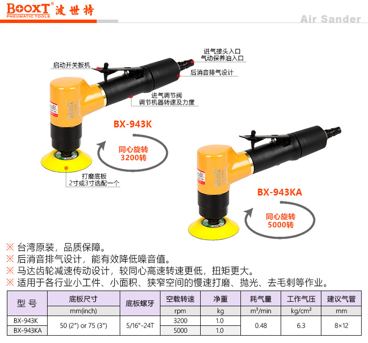 东莞强劲五金工具有限公司提供台湾BOOXT波世特气动工具,气动慢速打磨机BX-943K厂家直销,首件享特价。咨询热线:4008301980
