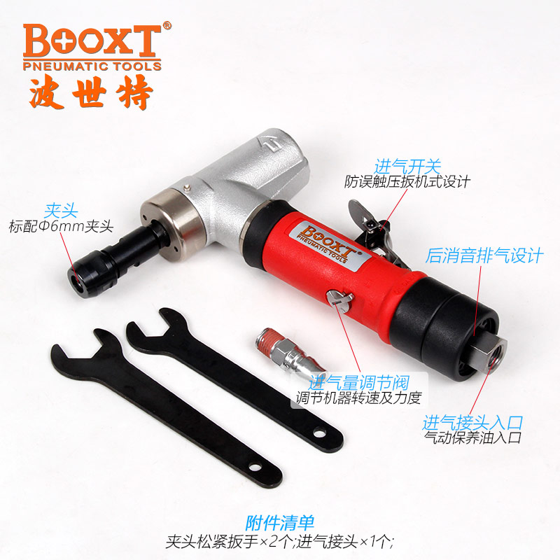 慢速气动打磨机特点:(弯头设计,更适合狭窄、深孔、细孔、偏角空间作业)