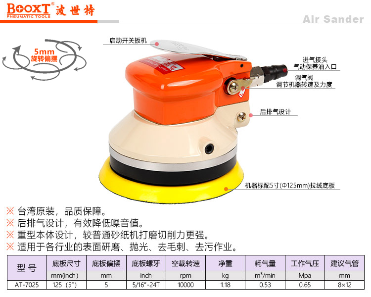 东莞强劲五金工具有限公司提供台湾BOOXT波世特气动工具,气动圆盘砂磨机AT-7025厂家直销,首件享特价。咨询热线:4008301980