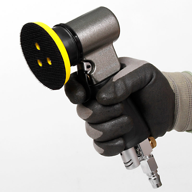 1.带偏心式,装砂纸打磨出来的效果是“雾”状,带细小乱丝的小纹路,适合后工艺需要做喷砂、烤漆,增加附着力。(标配一般为3mm偏摆,可选配1.5mm,0.75mm偏摆度)