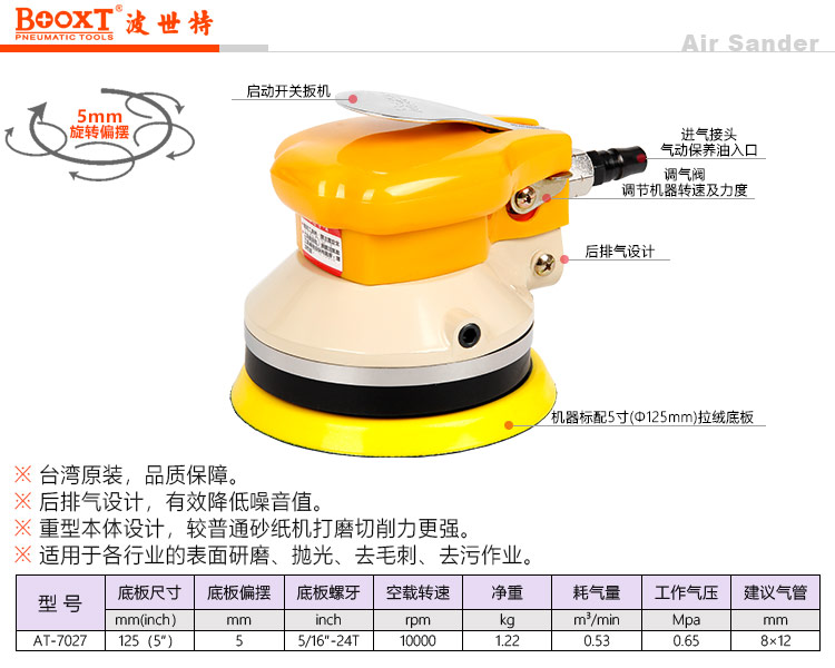 东莞强劲五金工具有限公司提供台湾BOOXT波世特气动工具,重型气动砂纸机AT-7027厂家直销,首件享特价。咨询热线:4008301980
