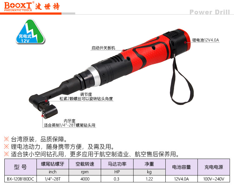 东莞市强劲五金工具有限公司提供台湾BOOXT波世特品牌气动工具,锂电航空弯头钻BX-200C180DCL厂家直销,首件享特价。咨询热线:4008301980