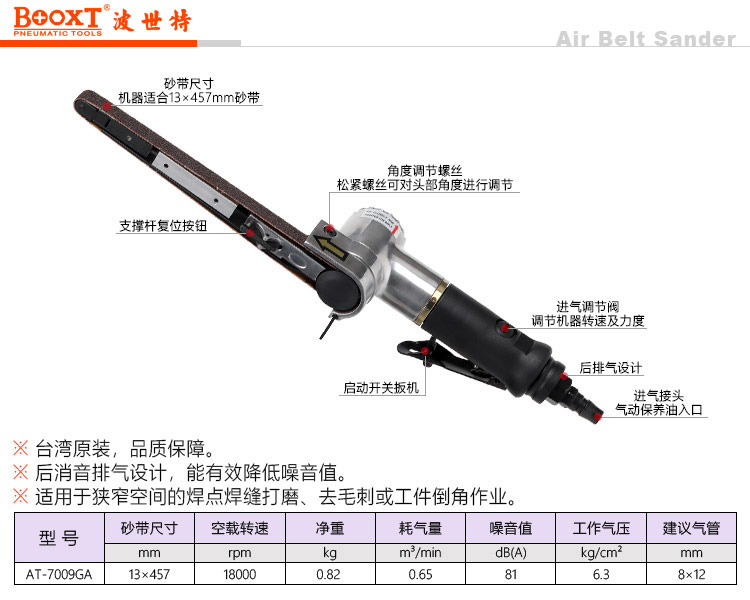 东莞市强劲五金工具有限公司提供台湾BOOXT波世特品牌气动工具,AT-7009GA圆手柄风动砂带机厂家直销,首件享特价。服务热线:4008301980