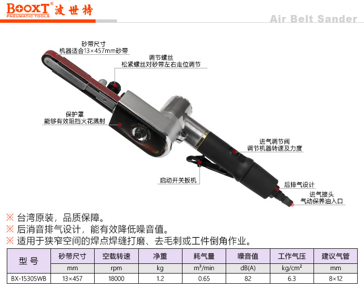 东莞市强劲五金工具有限公司提供台湾BOOXT波世特品牌气动工具,BX-15305WB 13mm气动砂带机厂家直销,首件享特价。服务热线:4008301980