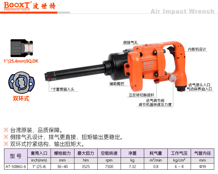 东莞市强劲五金工具有限公司提供台湾BOOXT波世特品牌气动工具,工业级气动风炮AT-5086G-6厂家直销,首件享特价。咨询热线:4008301980