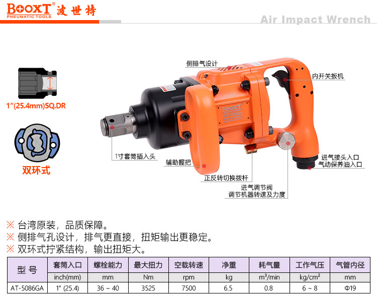 东莞市强劲五金工具有限公司提供台湾BOOXT波世特品牌气动工具,超轻气动风炮AT-5086GA厂家直销,首件享特价。咨询热线:4008301980