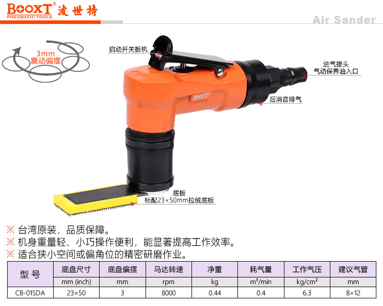 东莞强劲五金工具有限公司提供台湾BOOXT波世特气动工具,气动方形打磨机CB-01SDA厂家直销,首件享特价。咨询热线:4008301980