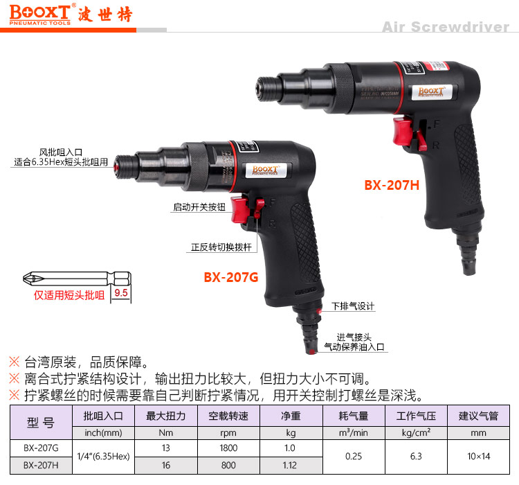 东莞强劲五金工具有限公司提供台湾BOOXT波世特气动工具,离合器气动螺丝刀BX-207H厂家直销,首件享特价。咨询热线:4008301980