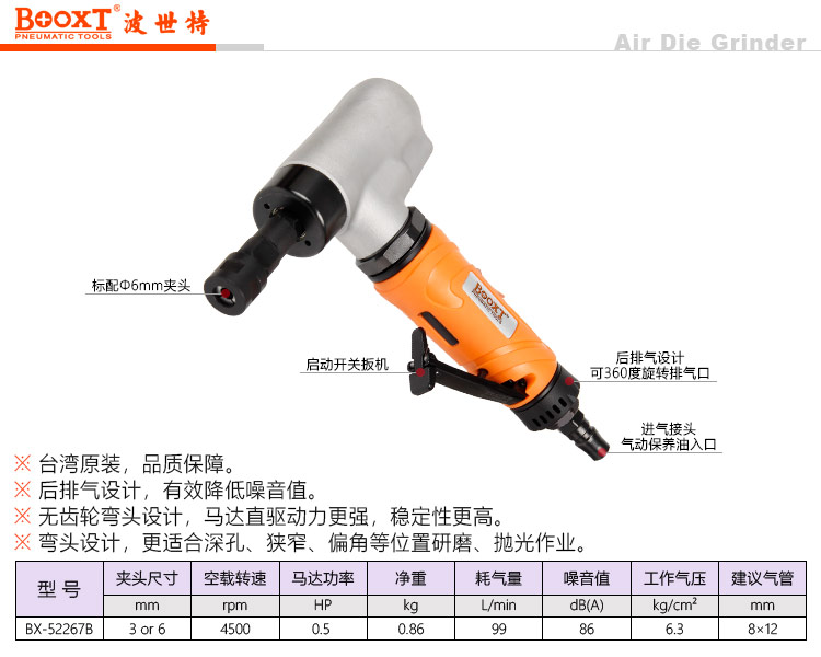 东莞市强劲五金工具有限公司提供台湾BOOXT波世特品牌气动工具,4500转风磨机BX-52267B厂家直销,首件享特价。咨询热线:4008301980