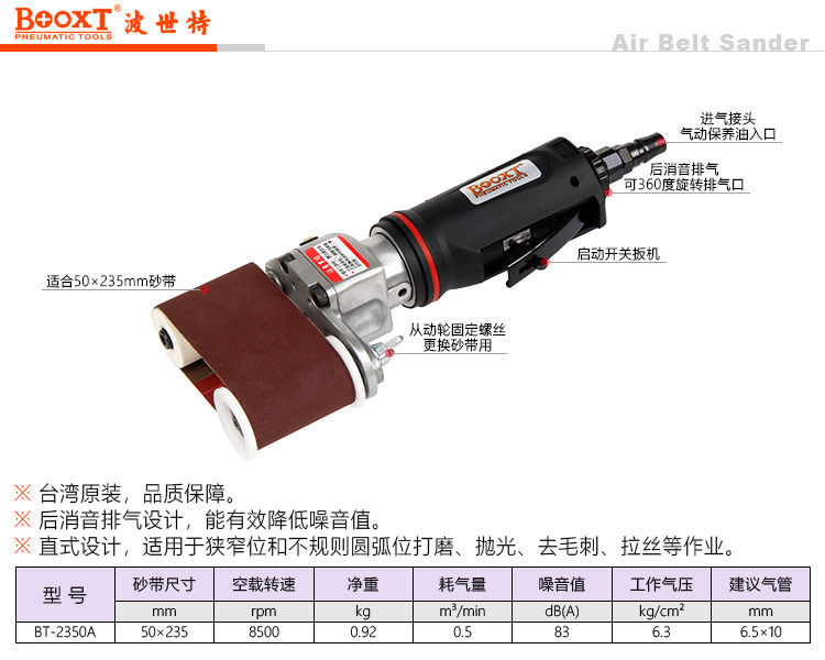 东莞市强劲五金工具有限公司提供台湾BOOXT波世特品牌气动工具,直式气动砂带机BT-2350A厂家直销,首件享特价。服务热线:4008301980