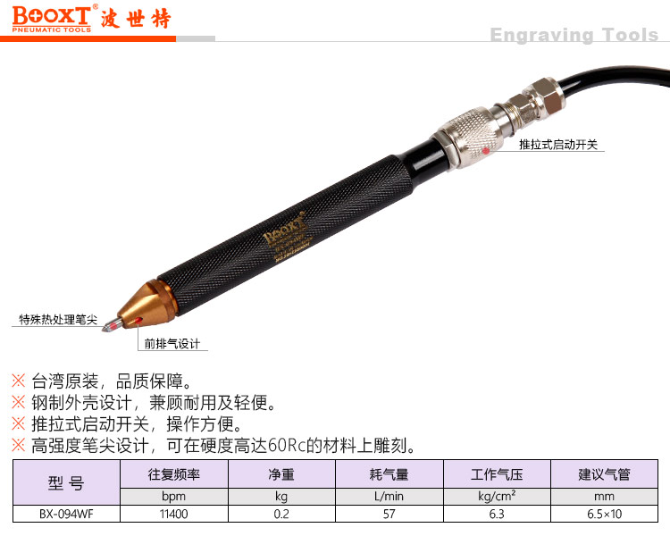 东莞市强劲五金工具有限公司提供台湾BOOXT波世特品牌气动工具,风动刻字笔BX-094WF厂家直销,首件享特价。咨询热线:4008301980