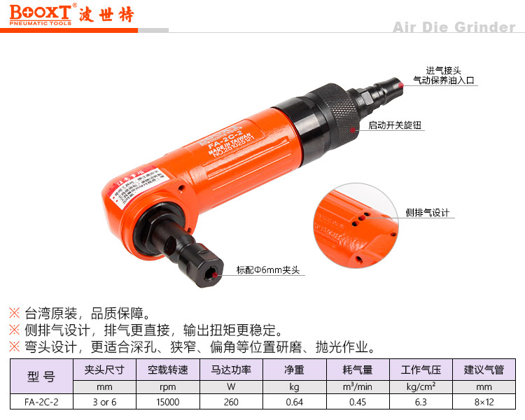 东莞市强劲五金工具有限公司提供台湾BOOXT波世特品牌气动工具,弯头气动刻磨机FA-2C-2厂家直销,首件享特价。咨询热线:4008301980