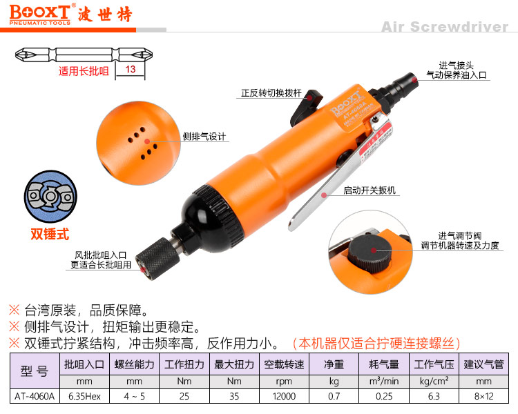 东莞市强劲五金工具有限公司提供台湾BOOXT波世特品牌气动工具,气动风批AT-4060A厂家直销,首件享特价。咨询热线:4008301980