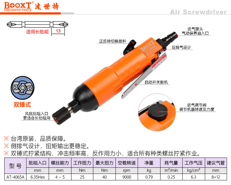 东莞市强劲五金工具有限公司提供台湾BOOXT波世特品牌气动工具,直型风批AT-4065A厂家直销,首件享特价。咨询热线:4008301980