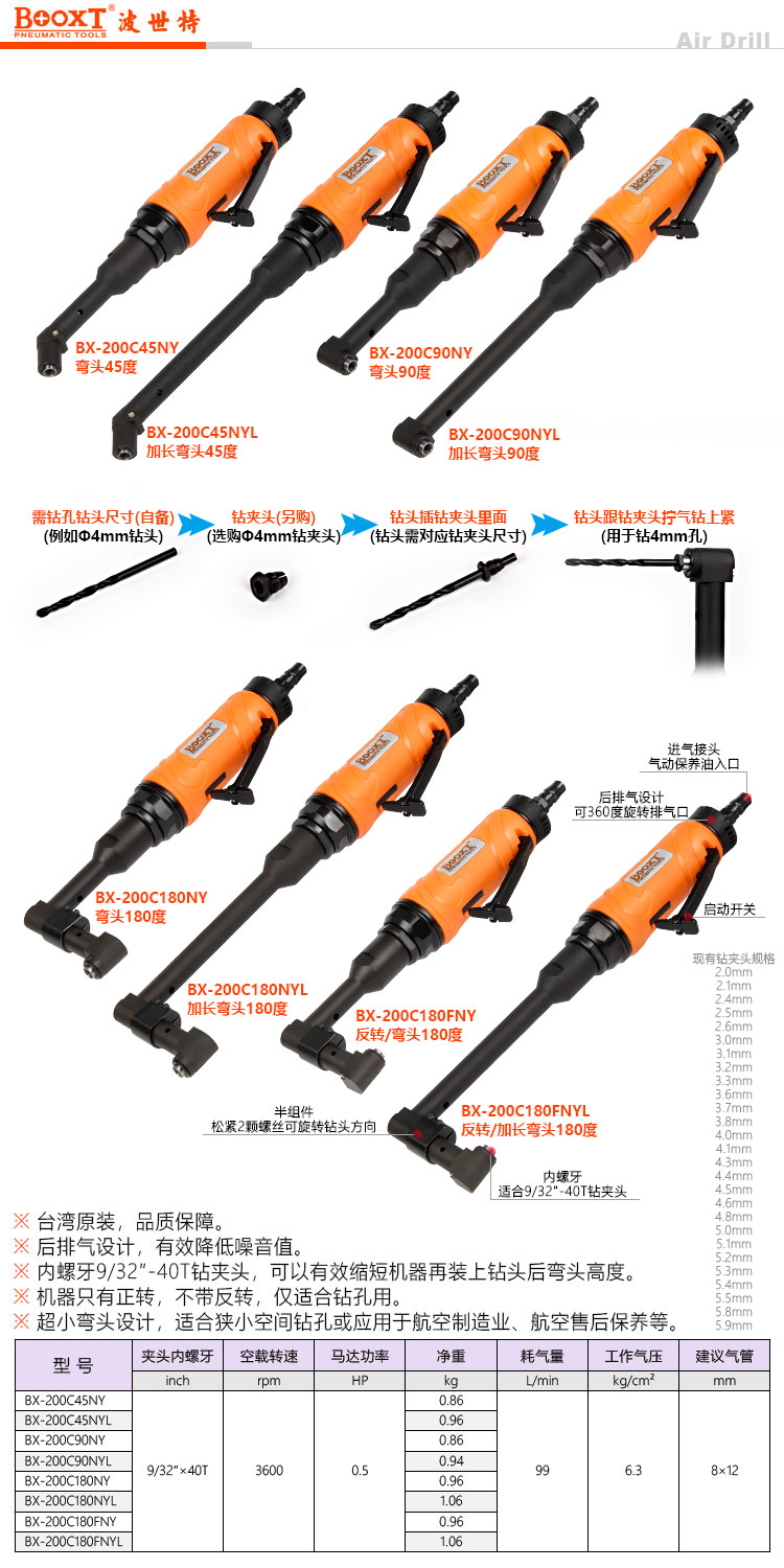 东莞市强劲五金工具有限公司提供台湾BOOXT波世特品牌气动工具,航空气动钻弯角BX-200C90NYL厂家直销,首件享特价。咨询热线:4008301980