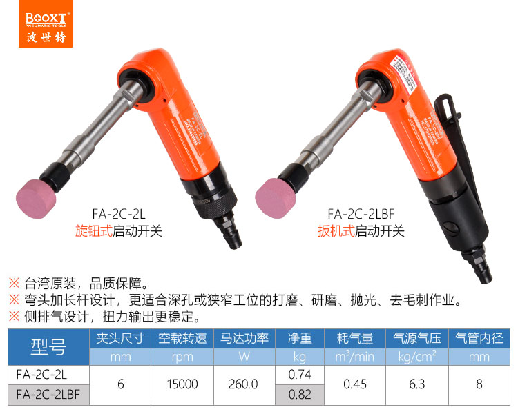 东莞市强劲五金工具有限公司提供台湾BOOXT波世特品牌气动工具,气动深孔打磨机FA-2C-2L厂家直销,首件享特价。咨询热线:4008301980