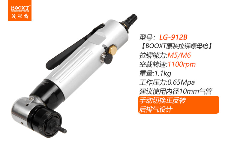 东莞市强劲五金工具有限公司提供台湾BOOXT波世特品牌气动工具,弯头气动铆螺母枪LG-912B厂家直销,首件享特价。咨询热线:4008301980