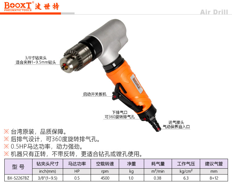 东莞市强劲五金工具有限公司提供台湾BOOXT波世特品牌气动工具,弯头气动钻BX-52267BZ厂家直销,首件享特价。咨询热线:4008301980