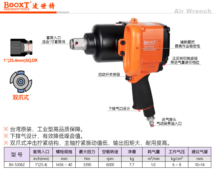 东莞市强劲五金工具有限公司提供台湾BOOXT波世特品牌气动工具,双爪式结构气动扳手BX-5306Z厂家直销,首件享特价。咨询热线:4008301980