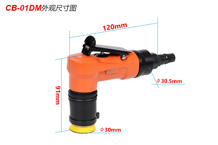 • 产品参数: 底盘尺寸:30mm (圆形1寸) 偏摆直径:3mm 空载转速:8000rpm 头部高度:91mm 机身长度:120mm 重 量:0.42kg 耗 气 量:0.4m3/min 【工业型/振动式】