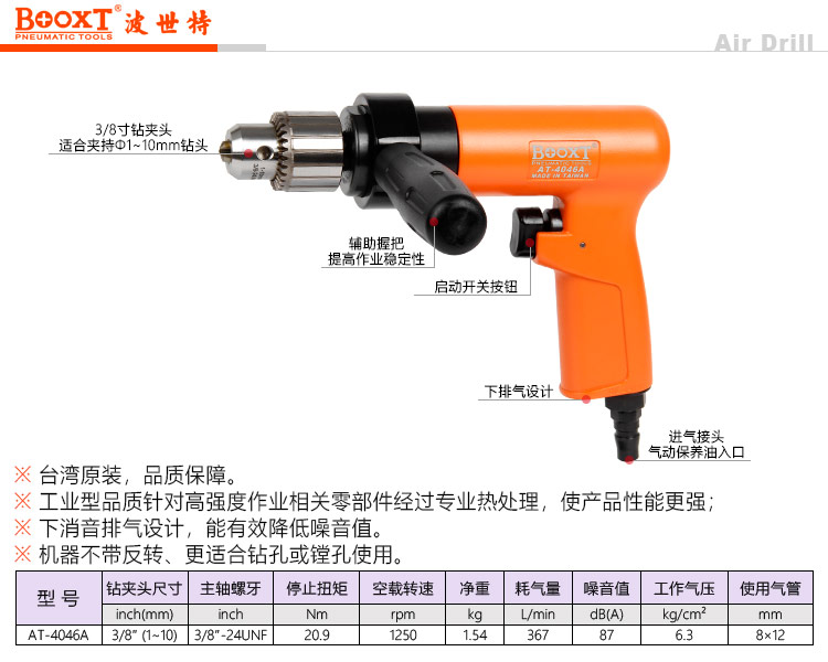 东莞市强劲五金工具有限公司提供台湾BOOXT波世特品牌气动工具,大扭力气动钻AT-4046A厂家直销,首件享特价。咨询热线:4008301980