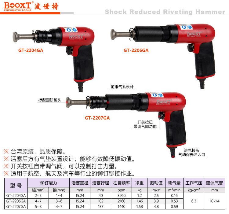 东莞市强劲五金工具有限公司提供台湾BOOXT波世特品牌气动工具,航空级气动铆钉锤GT-2204GA厂家直销,首件享特价。咨询热线:4008301980